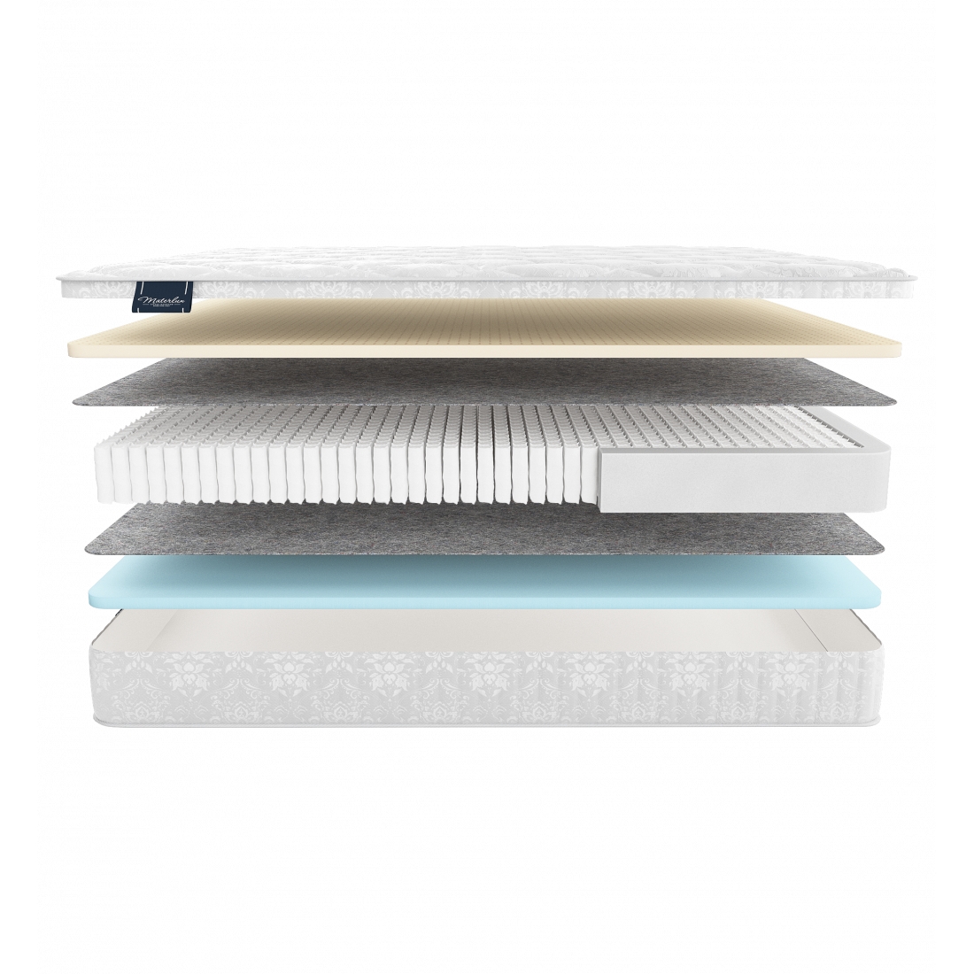 Одна из сторон модели содержит натуральный латекс, вторая – близкий к нему материал Natural Foаm. Внутри пружинный блок Мультипакет, он более точечно реагирует на вес спящего, создавая анатомический эффект, повторяющий контуры тела, и ортопедический - благодаря меньшему диаметру пружин из легированной стали.