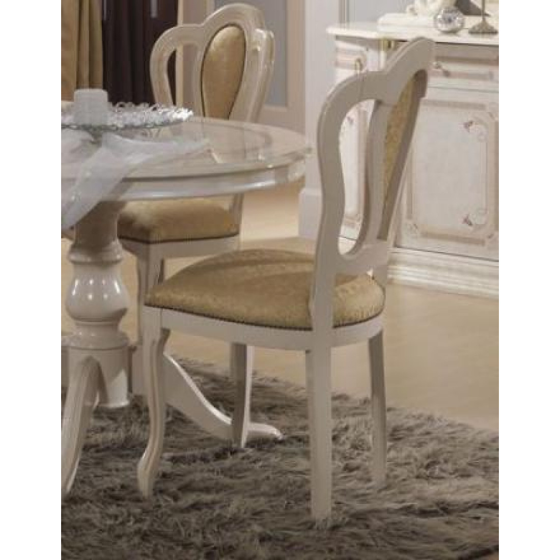 Гостиная Роза (беж) от фабрики ДИА мебель. Вся композиция выполнена в классическом стиле. Бежевый цвет в сочетании с глянцевым покрытием придает этой модели изящность и элегантность. Золотистый орнамент и аккуратные золотистые ручки на фасаде придадут чувства стиля. Мягкие и комфортные стулья помогут вам насладиться прекрасным вечером, после рабочего дня.