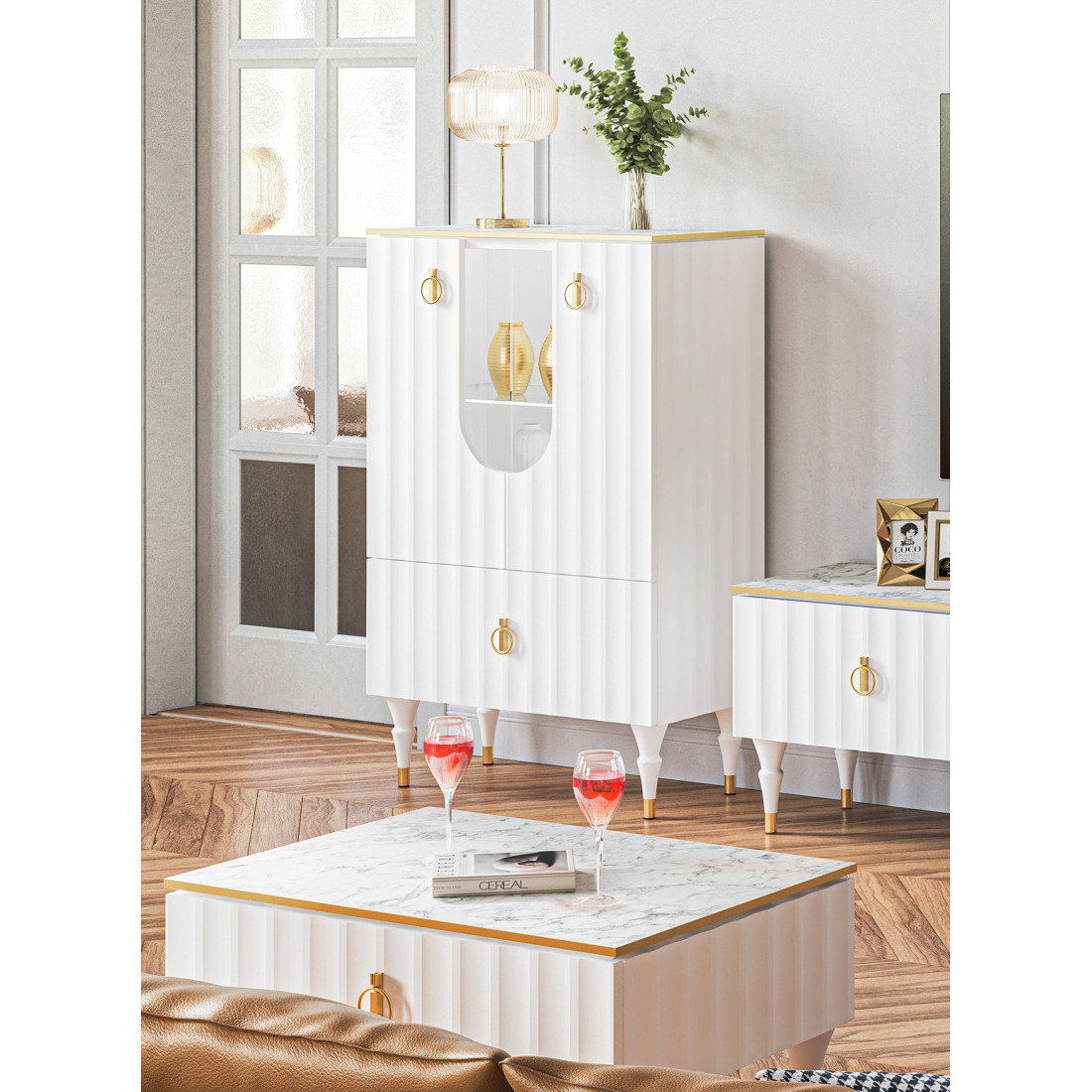 Шкаф-витрина навесной Лоренсо МН-043-02/03 белый