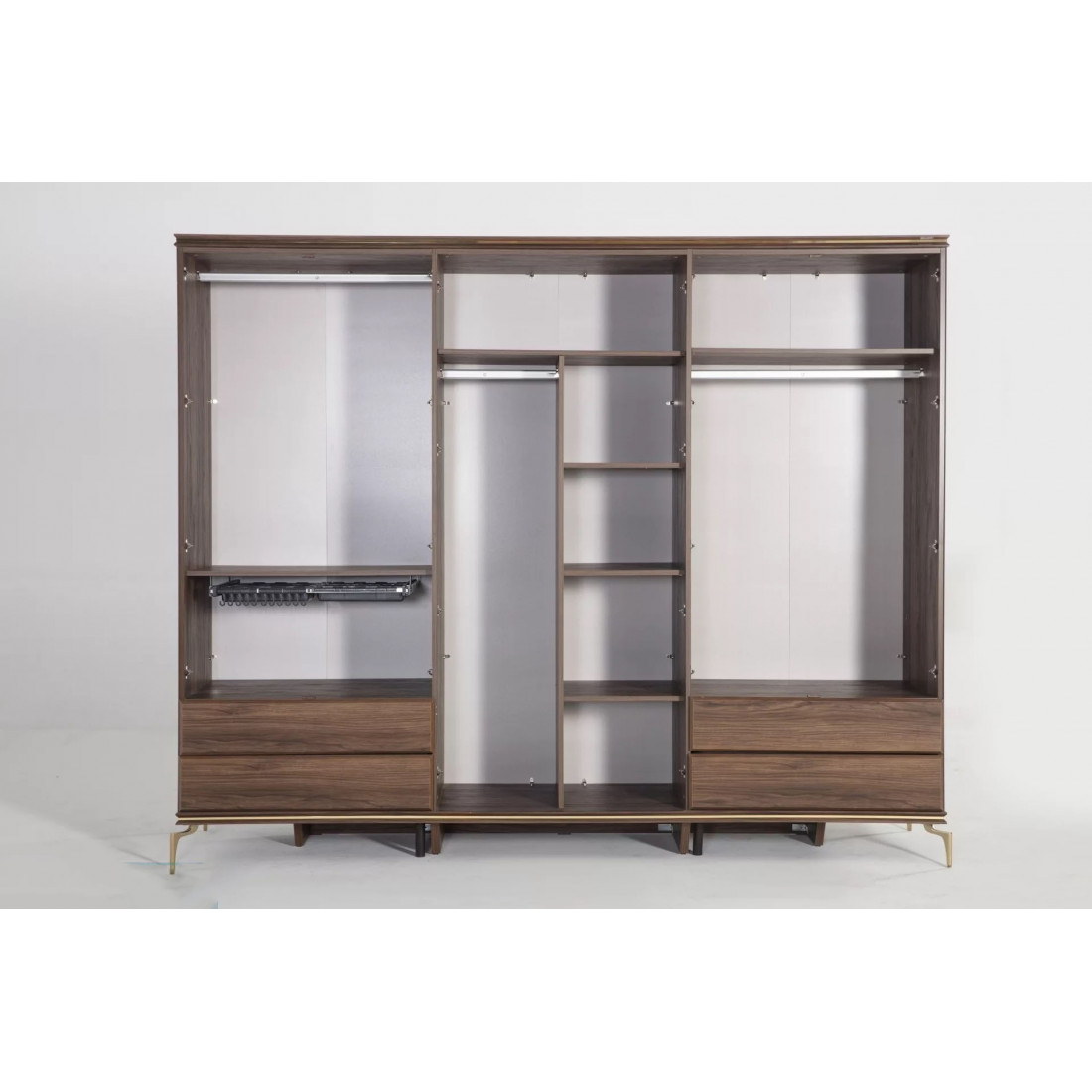 Шестидверный шкаф для одежды с зеркалом "Montego" – это великолепное и выгодное предложение для большой просторной спальни или гардеробной. Взять один большой шкаф намного удобнее, чем набирать много маленьких и думать, хорошо ли они сочетаются между собой. Изделие выполнено в современном дизайне.