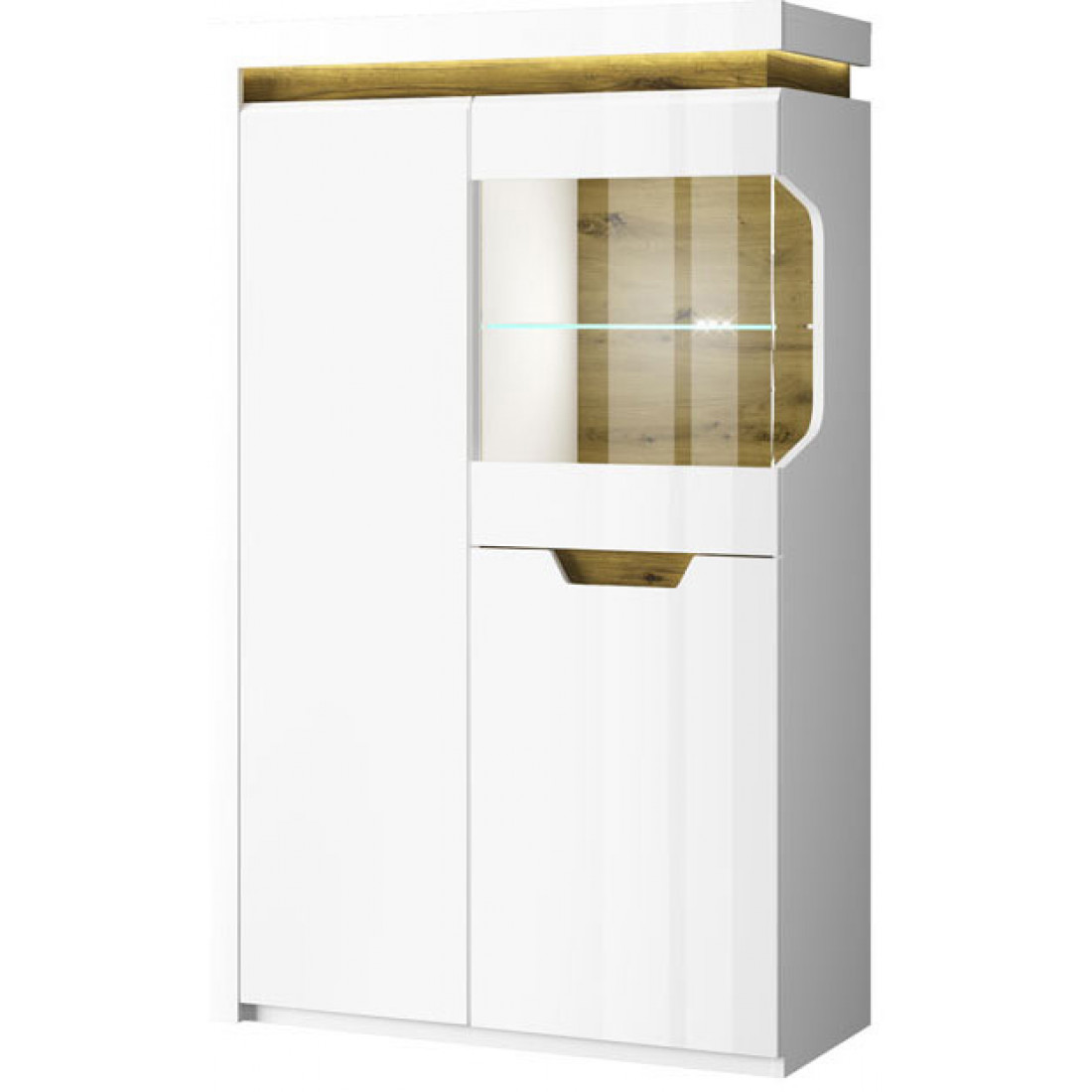 Шкаф с витриной Torino 1V2D L благодаря нетрадиционному дизайну является отличным вариантом для тех, кто всегда следует новым веяниям моды.